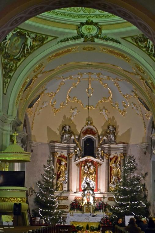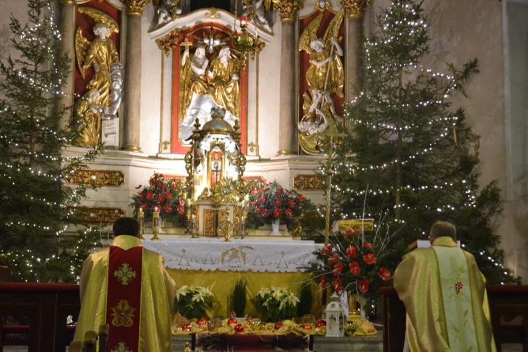 Dziękowaliśmy za liczne dzieła i inicjatywy, które zostały zrealizowane  w 2016 roku w naszej wspólnocie parafialnej.  W lipcu udało się rozpocząć od dawna przez parafian oczekiwaną renowację świątyni. Udał się uczynić pierwszy krok. Nasze oczy cieszy odnowiona ambona i chrzcielnica. W listopadzie zakończona została renowacja sklepienia w prezbiterium. Już zrealizowane pracy dają nam wyobrażenie o tym, jak pięknie będzie prezentować się nasza świątynia po zakończeniu całości prac. Do tego co prawda jeszcze droga daleka, ale już podczas dzisiejszej Mszy Świętej ks. kan. skierował do parafian i osób wspierających dzieło renowacji świątyni słowa podziękowania i zapewnienia o pamięci w modlitwie. Bez ich zaangażowania i składanych ofiar rozpoczęcie i sfinalizowanie pierwszego etapu prac byłoby niemożliwe.