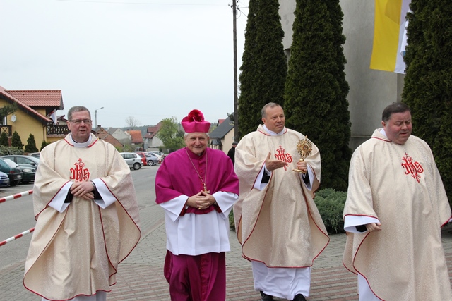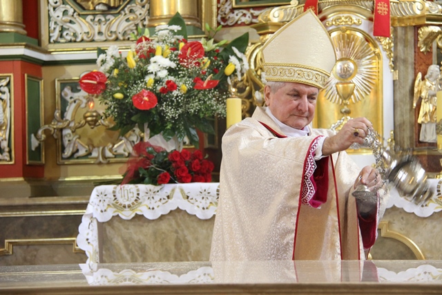 Podkreślał, że ołtarz jest najważniejszym miejscem w świątyni. – Na ołtarzu dokonuje się wielka tajemnica naszej wiary. Taki ołtarz ustawił pośrodku uczniów sam Jezus Chrystus w Wielki Czwartek w Wieczerniku. Dziś skłaniamy głowy przed poświęconym ołtarzem, który przeznaczony jest dla spraw świętych, bo przy każdej Mszy św. na ołtarz przychodzi Pan Jezus ukryty w Najświętszym Sakramencie – zaznaczył kaznodzieja.