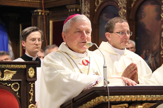 Zachęcał wiernych, aby na co dzień byli świadkami Chrystusa. - Św. Jan Paweł II mówił nam, żebyśmy odważnie wchodzili do Unii Europejskiej i napominał nas, że mamy do spełnienia ogromną rolę, żebyśmy nie wstydzili się swoich korzeni chrześcijańskich i byli odważnymi głosicielami Ewangelii. Kościół to nie jest ten podawany przez media liberalne, ale wy jesteście żywym Kościołem. Umacniajcie się w wierze, a jednocześnie idąc do tego świata jaki jest nie wstydźcie się Chrystusa i Jego Kościoła – powiedział ordynariusz diecezji kaliskiej.
