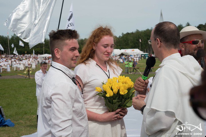 Przed chwilą na Polach Lednickich miało miejsce wydarzenie, którego chyba nikt się nie spodziewał. Sławek oświadczył się Marii, a ona właśnie powiedziała mu TAK w obecności kilkudziesięciu tysięcy uczestników Spotkania Młodych LEDNICA 2000.