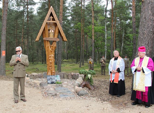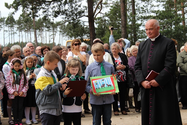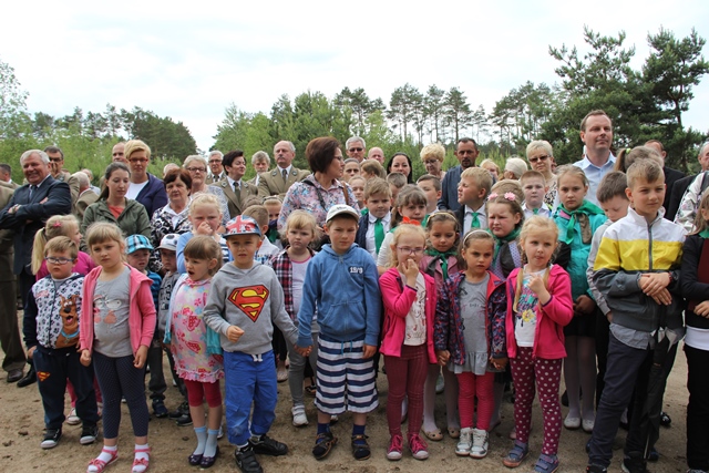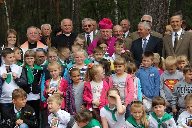 W uroczystości uczestniczyli także ks. prał. Marian Andrzejewski, proboszcz parafii św. Wojciecha Biskupa w Kościelcu Kaliskim, wójt gminy Mycielin Jerzy Matuszewski, dyrektor Ośrodka Kultury Leśnej w Gołuchowie Benedykt Roźmiarek, nadleśniczy Nadleśnictwa Kalisz Wiesław Chojnacki, uczniowie szkoły podstawowej, leśnicy i społeczność lokalna.