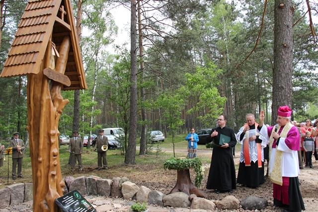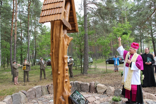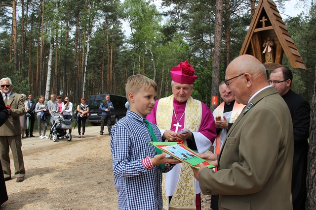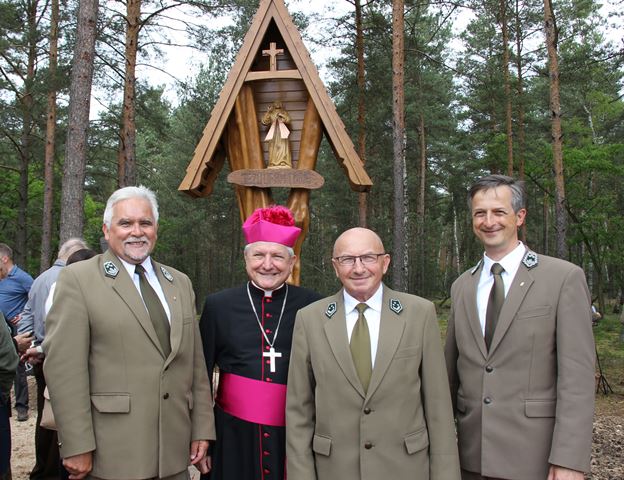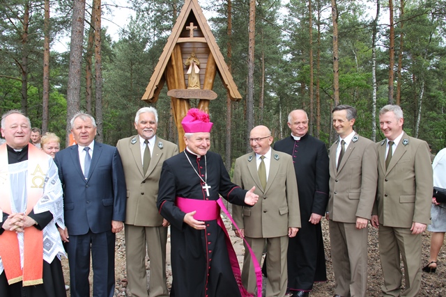 Biskup kaliski Edward Janiak poświęcił w lesie kapliczkę z figurą Jezusa Miłosiernego, którą ufundował odchodzący na emeryturę leśniczy leśnictwa Kazala w Nadleśnictwie Kalisz.