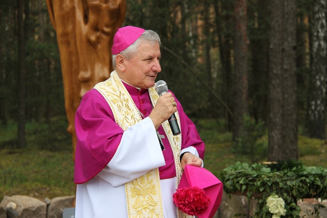 Bp Janiak poświęcił w lesie kapliczkę z figurą Jezusa Miłosiernego