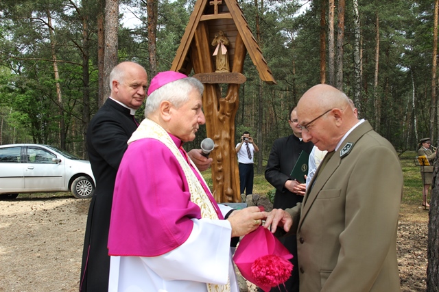 Biskup kaliski dziękował leśniczemu za inicjatywę wybudowania kapliczki. – To jest piękny symbol wdzięczności wobec Pana Boga, ale też piękny przykład dla młodego pokolenia. Kościół Kaliski jest młody w swoich strukturach, bo ma dopiero 25 lat. Niedawno dziękowaliśmy Panu Bogu za 20. rocznicę pobytu Jana Pawła II w Kaliszu. To zapisało się mocno w naszej pamięci. Mam też osobiste wspomnienia związane z wizytą papieża w Kaliszu. Pamiętam ten ogromny tłum i to ujmujące przemówienie Ojca Świętego w trosce o rodzinę i dzieci. Takich przeżyć nie zapomina się. W ten jubileuszowy czas wpisuje się ta dzisiejsza uroczystość wdzięczności człowieka wobec Boga – mówił bp Janiak.