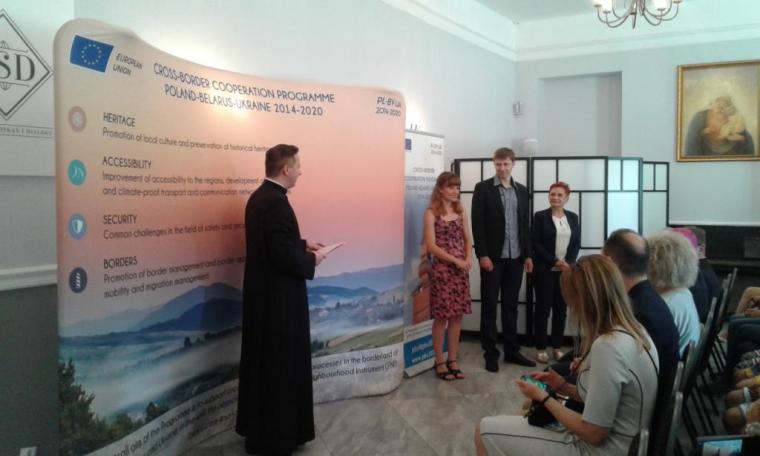 Spotkanie rozpoczął gospodarz, ks. kan. dr Łukasz Gołębiewski Dyrektor Caritas Diecezji Drohiczyńskiej, który przywitał zebranych gości: ks. bpa Antoniego Dydycza – biskupa seniora diecezji drohiczyńskiej, Marię Koc – Wicemarszałek Senatu RP, Tomasza Jędrzejewskiego – zastępcę Kierownika Wspólnego Sekretariatu Technicznego Polska-Białoruś-Ukraina, Agnieszkę Ćwikłę – specjalistę do spraw komunikacji w tymże programie oraz ks. kan. dra Romualda Koska, proboszcza parafii poklasztornej w Węgrowie. Ksiądz Biskup wyraził radość, że po raz kolejny dzieci zza wschodniej granicy goszczą na terenie diecezji, podkreślił, że tego rodzaju inicjatywy są szczególnie ważne, bowiem dzieci i młodzież mogą się wzajemnie poznawać, swoje kultury, zwyczaje i obyczaje. Głos zabrała również Maria Koc, która podkreśliła wymiar wzajemnej integracji w kształtowaniu osobowości, pomiędzy uczestnikami Akademii pochodzącymi z różnych krajów. W imieniu wszystkich zebranych Wicemarszałek Senatu RP złożyła życzenia ks. bp. Antoniemu Dydyczowi, który tego dnia obchodził 23 rocznicę sakry biskupiej i ingresu do drohiczyńskiej Katedry.