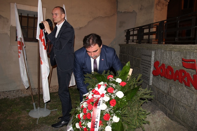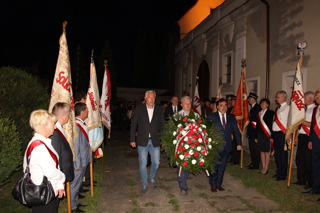 Po Mszy św. delegacje: posła RP, władz Kalisza, Zarządu Regionu NSZZ „Solidarność” Wielkopolska Południowa, i innych organizacji złożyły wiązanki kwiatów przed tablicą Solidarności w Ogrójcu Jezuitów.