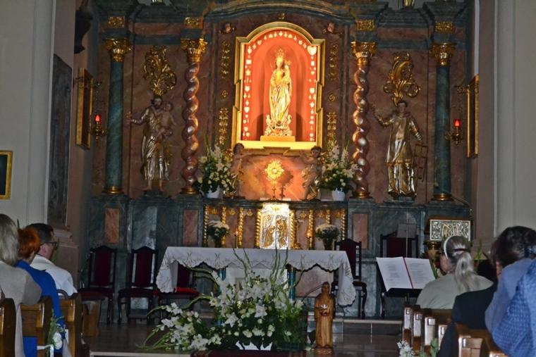 Cisza zapanowała na Lednickich Polach, gdy nadszedł czas adoracji Jezusa ukrytego w Najświętszym Sakramencie. Przed wystawionym Najświętszym Sakramentem został odczytany uroczysty Akt odnowienia Wyboru Chrystusa. Warto tu przytoczyć jego słowa: „Panie Jezu Chryste Ciebie wybieram jako mojego Pana i za Apostołem Piotrem powtarzam Ty jesteś Chrystus Syn Boga Zbawiciel. Tobie oddaję swoją przeszłość, dzień dzisiejszy i przyszłość oraz całą moją wieczność. Ty jesteś moją prawdą. Ty jesteś moją drogą, moim życiem i moją miłością teraz i na wieczność”. Wraz z pielgrzymami, którzy tak jak my przybyli na to niezwykłe modlitewne spotkanie przeszliśmy przez Bramę III Tysiąclecia. Zachwyciła nas oprawa muzyczna, przygotowane spektakle i atmosfera wzajemnej życzliwości. Uroczystości na Lednicy zakończyły się tuż po godzinie 18:00. Piękny i przepełniony radością był ten czas spotkania z Jezusem i bliźnimi na Lednickich Polach. Udział w spotkaniu nie był ostatnim etapem naszego pielgrzymowania w tym dniu. Z Lednicy udaliśmy się do Sanktuarium Matki Bożej Tuleckiej. W drodze do sanktuarium ks. proboszcz przybliżył nam histori jego powstania. Tulecka wspólnota parafialna przygotowywała się do uroczystości odpustowych. W świątyni trwał Koncert Wielbienia. W sanktuarium przywitał nas ks. Marian Libera, kustosz tego miejsca. Był czas na chwilę indywidualnej modlitwy – rozmowy z Matką Bożą, a potem trzeba było wyruszyć dalszą drogę. Do Mikstatu wróciliśmy około 23:00. Dobrze nam było na tym pielgrzymim szlaku. Uczestnicząc w Lednicy Seniora mogliśmy się przekonać, że Kościół jest wspólnotą, w której jest miejsce dla każdego człowieka.