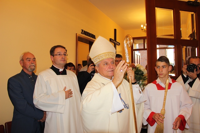 Witając biskupa, kapłanów i wiernych ks. Robert Lewandowski podkreślał, że ta świątynia została wybudowana trudem wielu ludzi. Dodał, że nie byłoby jej, gdyby nie charyzmatyczna postawa i szlachetne kapłańskie życie ks. prał. Józefa Sieradzana, który latach 80. odkrył potrzebę stworzenia w tym miejscu ośrodka duszpasterskiego, a potem parafii.