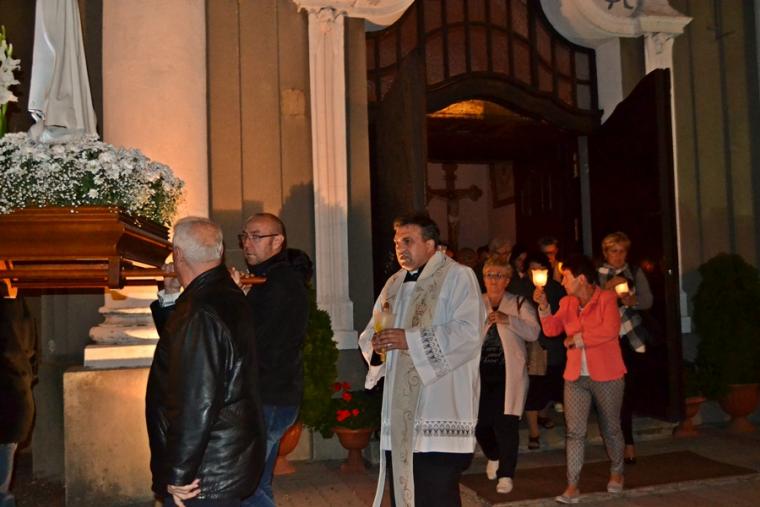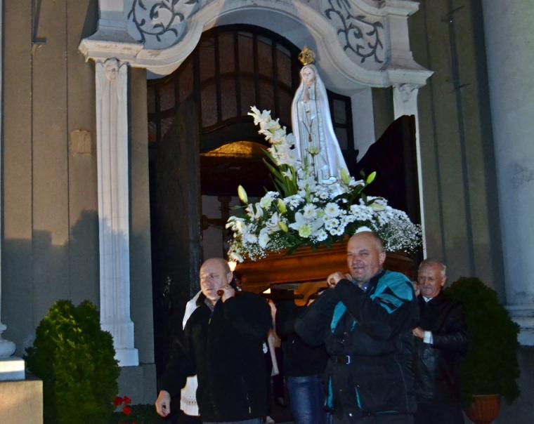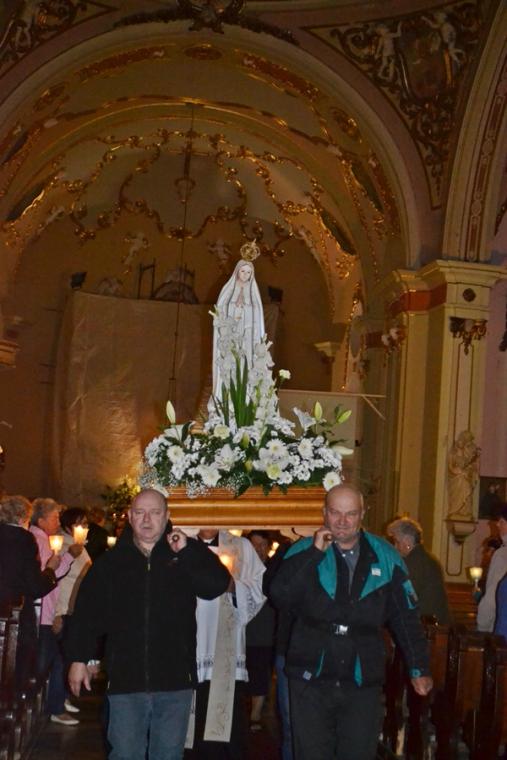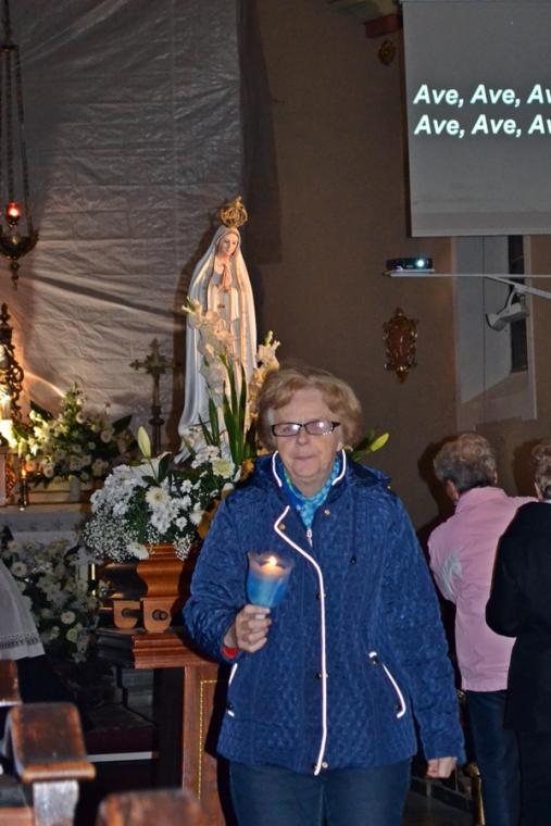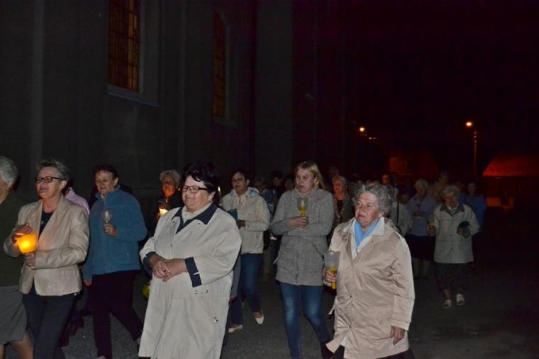 Kolejne postanowienia dotyczyły codziennej modlitwy do Ducha Świętego, a także obrania Maryi za Królową naszych serc. Podczas odmawiania piątej tajemnicy w świątyni zapłonęły lampiony przyniesione przez wiernych. Zostały one zapalone od świecy jubileuszowej  stojącej przy figurze Fatimskiej Pani. Następnie odmówiliśmy  modlitwę Anioła i ze śpiewem na ustach z zapalonymi lampionami wyruszyliśmy  figurą Fatimskiej Pani z procesją wokoło kościoła. W tym czasie rozległ się dźwięk dzwonów, który przypomina nam o tym, by stanąć do Apelu Jasnogórskiego. Towarzyszy nam on od czasu nawiedzenia naszej parafii przez Czarną Madonnę w 2011 roku. Po powrocie do kościoła został odśpiewany Apel Jasnogórski . Maryjo: jesteśmy, pamiętamy, czuwamy- to wyznanie popłynęło ku niebu z naszego parafialnego wieczernika.  Modlitwą w ten wieczór objęliśmy także zgromadzonych w polskiej Fatimie na zakopiańskich Krzeptówkach Kustoszy Sanktuariów i uczestników Międzynarodowego  Kongresu Maryjno- Mariologicznego.