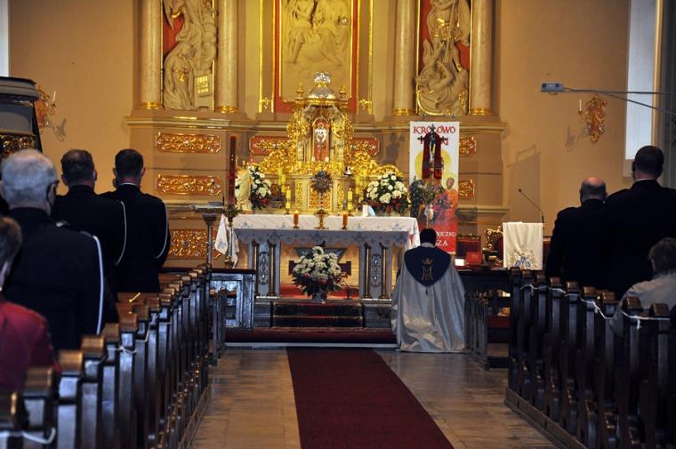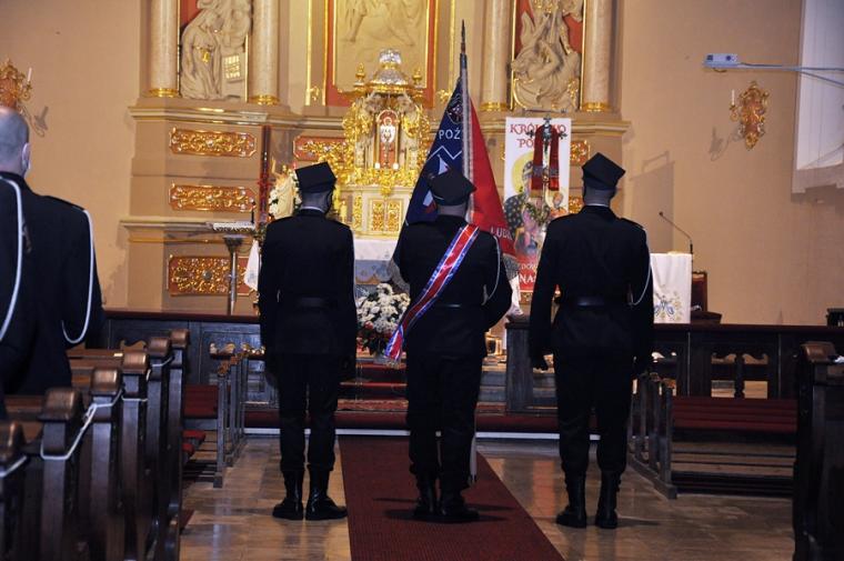 Druhny i druhowie OSP Mikstat zgromadzili się w strażnicy skąd wraz z pocztem sztandarowym przeszli do kościoła. Przybyli tu także strażacy z Kaliszkowic Kaliskich.