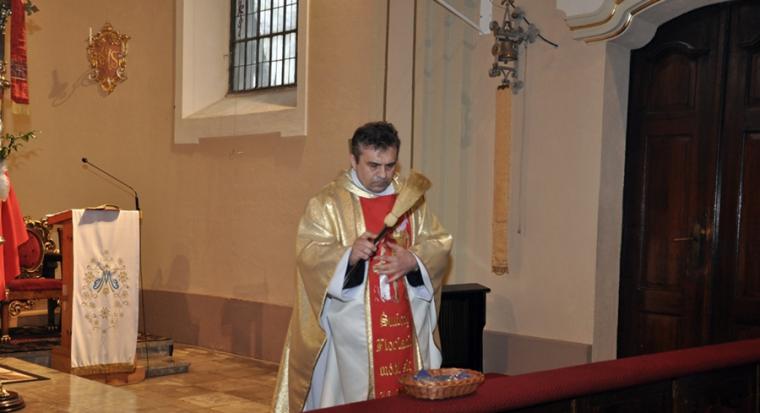Przed końcowym błogosławieństwem ks. proboszcz poświęcił medaliki ze św. Florianem. Otrzymali je strażacy. Niech ich patron czuwa nad nimi i oręduje we wszystkich ich potrzebach i ich bliskich przed Bożym tronem.