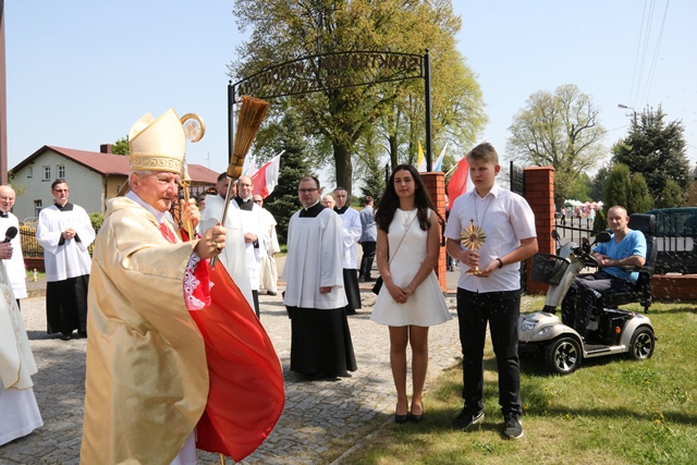 Podczas Mszy św. biskup poświęcił młodzieży krzyżyki i figurę św. Józefa, która jest darem rodziców dzieci pierwszokomunijnych.Uroczystość zakończyła procesja do nowych stacji św. Wojciecha, podczas której biskup poświęcił każdą stację. Po Mszy św. wierni mogli ucałować relikwie św. Wojciecha.