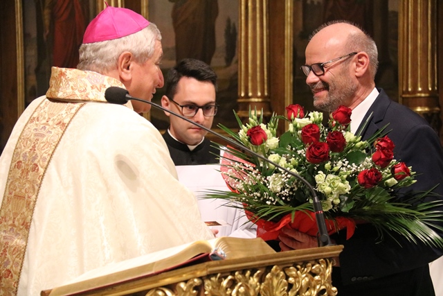 Zacytował fragment homilii wygłoszonej przez biskupa kaliskiego Edwarda Janiaka w dniu ingresu, w którym wyrażał gotowość do służby w diecezji licząc na orędownictwo i wsparcie św. Józefa. – Dziś po 6 latach służby w Kościele kaliskim dziękujemy za ojcowskie ciepło, za pogodne usposobienie, za cierpliwość i wyrozumiałość, za „Oportet servire” – podkreślał wikariusz biskupi ds. duchowieństwa.