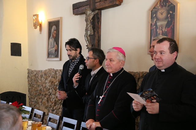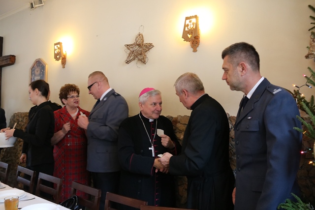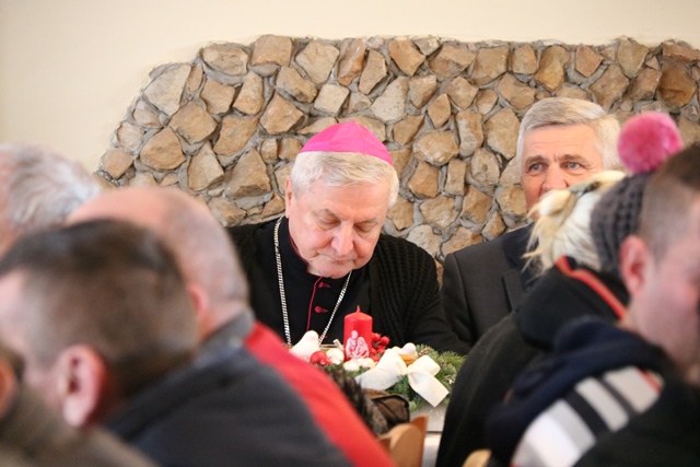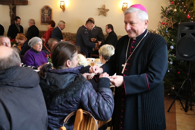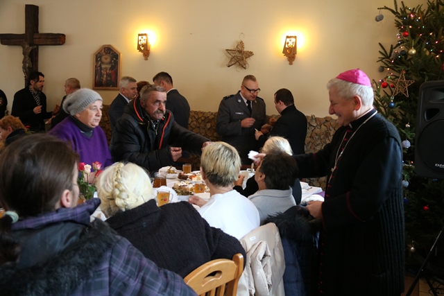 Bp Janiak na wigilii dla podopiecznych Caritas