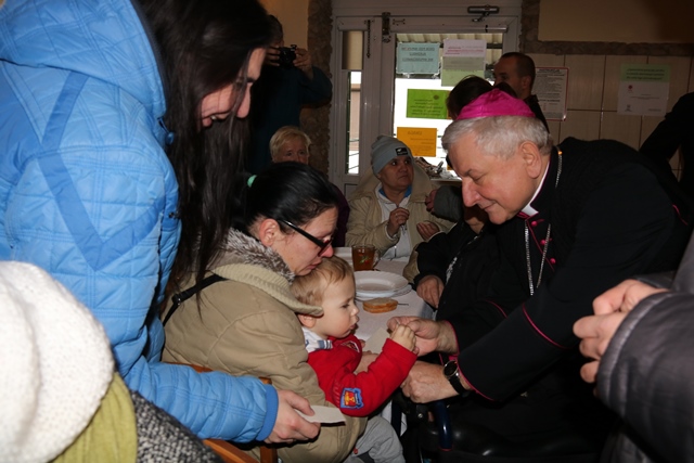 Podziękował władzom miasta Kalisza, dzięki którym Caritas może wydawać codziennie posiłki. Dziękował także dyrektorowi i pracownikom Caritas Diecezji Kaliskiej za służbę ludziom, którym dzisiaj ciężko żyje się.