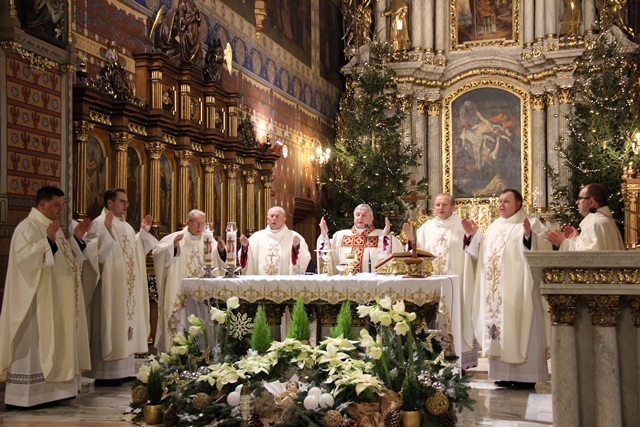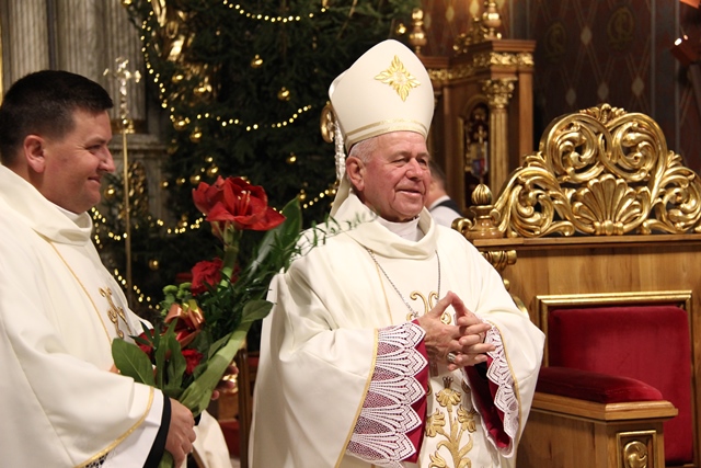 Po Mszy św. biskupi przełamali się opłatkiem z wiernymi. Uroczystość uświetniła orkiestra „Gród nad Prosną” i chór „Canticum”.