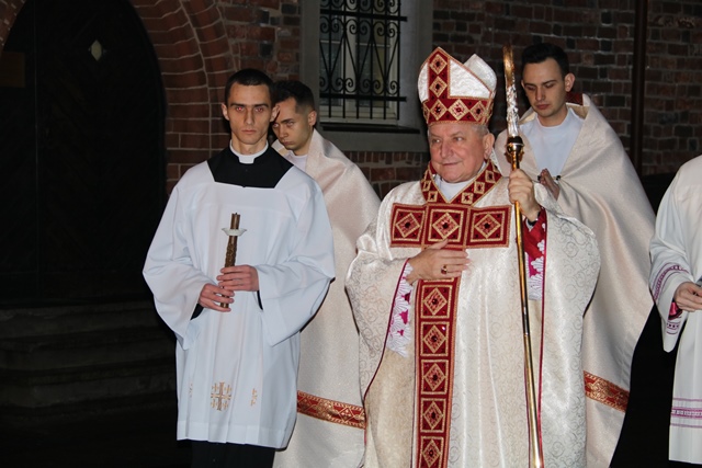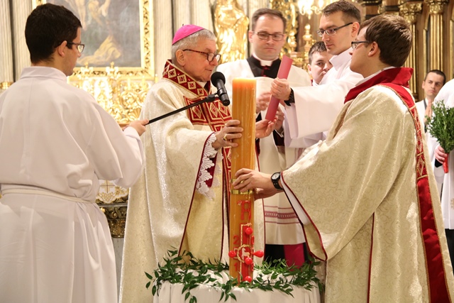 Dodał, że drugi żywioł, który uwydatnia liturgia Wigilii Paschalnej to woda. – My, jako dorośli, obmyci już dawno wodą chrztu św., czyli zanurzeni jeszcze w dzieciństwie w śmierć Chrystusa, winniśmy żyć dla Boga w jedności z Chrystusem Zmartwychwstałym – podkreślał bp Janiak.