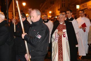 Wraz z biskupem kaliskim Edwardem Janiakiem modlili się: biskup pomocniczy diecezji kaliskiej Łukasz Buzun, proboszcz katedry ks. prał. Adam Modliński, kapłani pracujący w Kurii Diecezjalnej i katedrze.