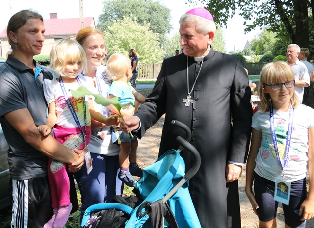 Na trasie pielgrzymki, w Parcicach, z pątnikami spotkał się biskup kaliski Edward Janiak, który przewodniczył Mszy św. w kościele Podwyższenia Krzyża Świętego.