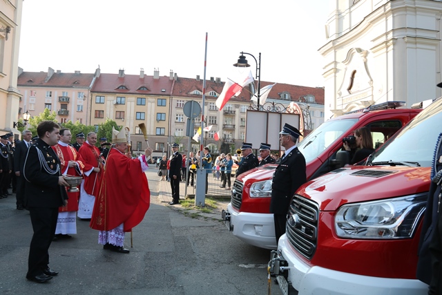 Po Mszy św. bp Janiak poświęcił 10 nowych wozów strażackich przekazanych strażakom z południowej Wielkopolski. W całej Wielkopolsce zakupiono 30 nowych pojazdów.