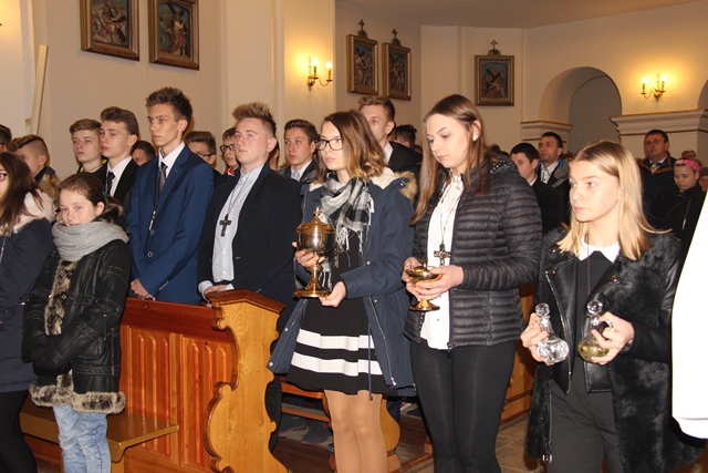 Zwracając się do młodzieży mającej przyjąć sakrament bierzmowania podkreślał, że kościół parafialny powinien być dla nich miejscem modlitwy i aktywności duszpasterskiej. - Zostajecie włączeni w życie waszego kościoła parafialnego po to, abyście byli aktywnymi chrześcijanami w tej wspólnocie, żebyście interesowali się jej życiem i wnosili swoją cząstkę, żebyście ją ubogacali waszą modlitwą i waszą obecnością. Niech w niedzielę tutaj nikogo nie zabraknie – zachęcał kaznodzieja.