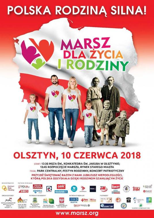 Tegoroczny Marsz dla Życia i Rodziny w Olsztynie odbędzie się 10 czerwca pod hasłem "Polska Rodziną silna!". Patronat honorowy sprawują: Arcybiskup Metropolita Warmiński, Prezydent Olsztyna i Wojewoda Warmińsko-Mazurski.