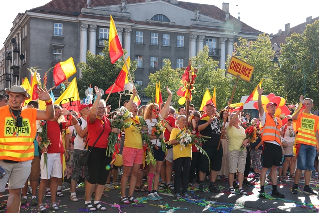Mieszkańcy Kalisza wyszli 19 sierpnia na ulice miasta, aby powitać powracających z Jasnej Góry pielgrzymów 381. Pieszej Pielgrzymki Kaliskiej i 27. Diecezji Kaliskiej.
