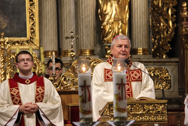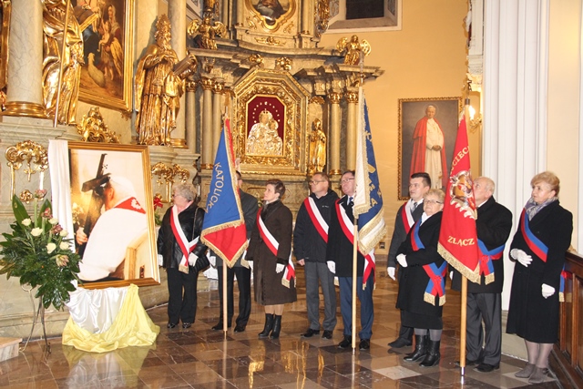 Witając biskupa i licznie zgromadzonych członków Akcji Katolickiej ks. prał. Adam Modliński wskazywał na krzyż, który w Wielki Piątek 2005 r. papież Jan Paweł II tulił do swojej piersi. – Od 22 października patronem Akcji Katolickiej jest św. Jan Paweł II. To łaska Boża, że właśnie dzisiaj, gdy na tej Mszy św. gromadzą się przedstawiciele Akcji Katolickiej z całej diecezji, w tym kościele jest krzyż, przy którym modlił się i do którego z synowską miłością i głęboką czcią tulił się Ojciec Święty Jan Paweł II osiem dni przed przejściem z tego świata do Domu Ojca – powiedział proboszcz katedry.