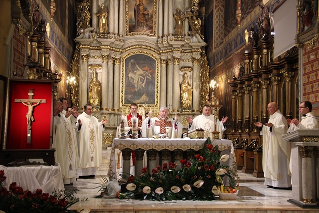 Podczas Mszy św. bp Edward Janiak poświęcił kopię krzyża papieskiego wykonaną przez tego samego rzeźbiarza. Przed udzieleniem pasterskiego błogosławieństwa biskup kaliski nawiązując do uroczystości Chrystusa Króla Wszechświata przekonywał, że krzyż jest znakiem zwycięstwa nad śmiercią. - Chciałbym, abyśmy wychodząc z tej katedry mieli przeświadczenie, że wszyscy zmierzamy do Królestwa Bożego. Podstawową prawdą naszej wiary jest prawda o zmartwychwstaniu. Chrystus na krzyżu nie pozostał, On nas odkupił na krzyżu, ale zmartwychwstał. Z tej prawdy płynie optymizm chrześcijański, dlatego warto być dobrym człowiekiem i wypełniać Boże przykazania, bo w perspektywie mamy Królestwo Boże – przekonywał bp Janiak, który dziękował członkom Akcji Katolickiej za zaangażowanie w życie Kościoła kaliskiego.