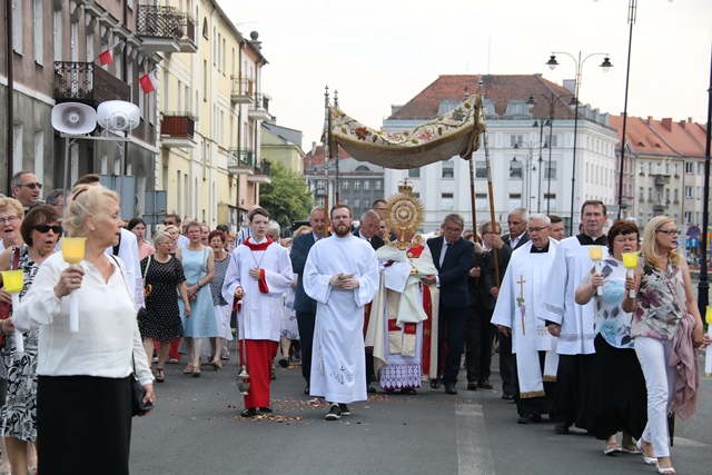 Mieszkańcy Kalisza licznie uczestniczyli w niedzielę w procesji ku czci Najświętszego Serca Jezusowego, której przewodniczył bp senior Stanisław Napierała.