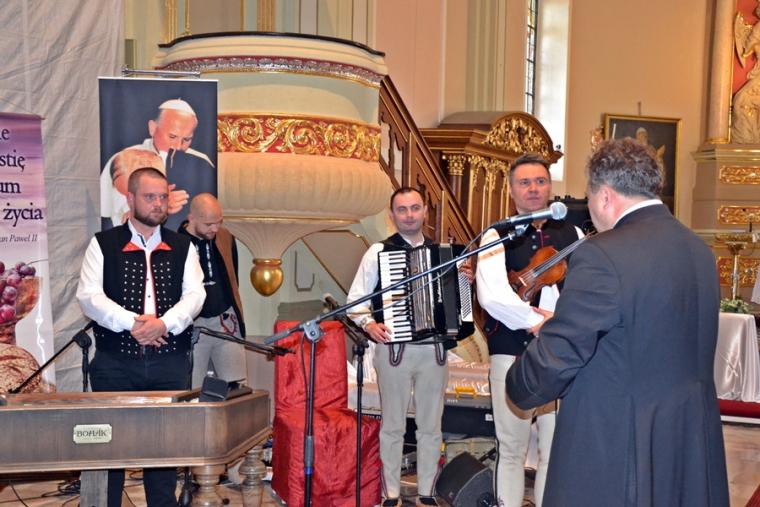 Po Mszy świętej odbył się koncert Zebrani w kościele usłyszeli wyjaśnienie znaczenia nazwy Kapeli. Było kilka słów o miłości św. Jana Pawła do gór. Potem dźwięki góralskiej muzyki wypełniły naszą świątynie. W doświadczeniu klimatów górskich i miejsc, które szczególnie ukochał Papież – Polak pomocna była prezentacja multimedialna.