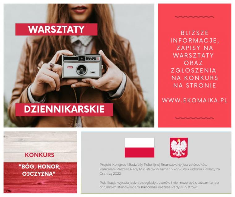Zapraszamy także do udziału w Konkursie „Kocham Polskę - Bóg, Honor, Ojczyzna" oraz w warsztatach dziennikarskich. SPRWADŹ SZCZEGÓŁY!