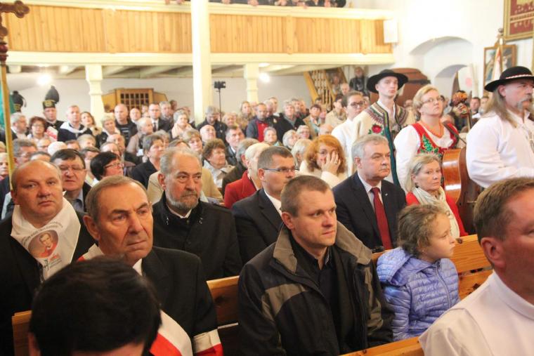 Na uroczystość przybyli również m.in.: poseł na sejm Krzysztof Kubów, przedstawiciele władz samorządowych: przewodnicząca Rady Powiatu w Lubinie Jadwiga Musiał, burmistrz Ścinawy Krystian Kosztyła, członkowie i zarząd NSZZ Solidarność Zagłębie Miedziowe, miejscowi radni oraz członkowie lokalnych stowarzyszeń. Jak zawsze licznie przybyły do swojego patrona poczty sztandarowe reprezentujące świat ludzi pracy całego Zagłębia Miedziowego oraz Sybiracy.