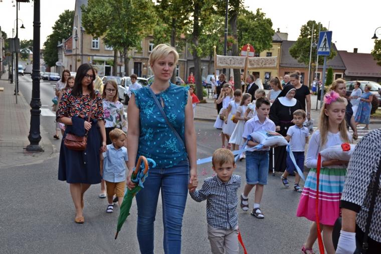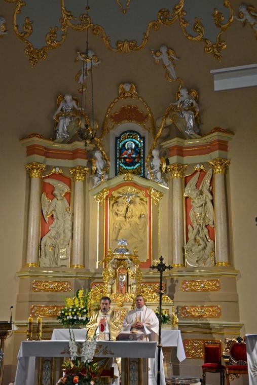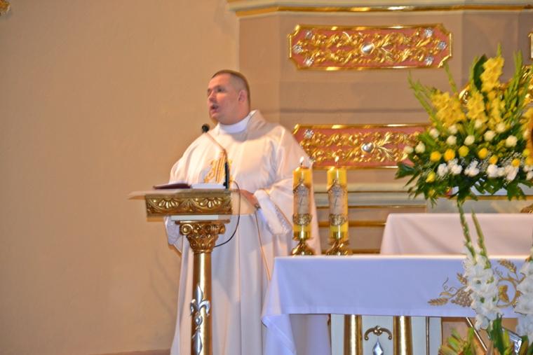 Rozpoczynając homilię ks. kan. Krzysztof podkreślił, że uroczystość Najświętszego Serca Pana Jezusa została ustanowiona na życzenie Pana Jezusa skierowane do św. Małgorzaty Marii Alacoque. Kaznodzieja przypomniał słowa św. Jana Pawła II skierowane do wiernych we Włocławku w 1991 roku: „ Jezu cichy i pokornego serca, uczyń serca nasze według serca Twego. Tak może mówić człowiek do Boga, który stał się Człowiekiem, który jako Człowiek nosi całą pełnie bóstwa i całą niezmierzoną głębie tajemnicy powołania człowieka w Bogu, w tym właśnie ludzkim sercu. Nosi tez w tym ludzkim sercu, na końcu włócznią przebitym włócznią, całą tajemnice ceny, wartości, jaką ma człowiek, całą tajemnicę odkupienia”. Kapłan zachęcał wiernych, by jak najczęściej prosili Jezusa, by uczynił ich serca na wzór Jego boskiego serca i by nie zrywali nigdy przyjaźni z Bogiem. Serca yo najważniejszy nazad ludzkiego ciała-kontynuował celebrans. Bicie serca świadczy o tym, że żyjemy. Podkreślił, że można komuś podarować serce, obdarzyć kogoś miłością. Zaakcentował, że wzorem miłości jest dla człowieka Jezus, gdyż Jego serce zostało przebite na krzyżu za nasze grzechy. Uroczystość Najświętszego Serca Jezusowego jest okazją do dziękczynienia za wielka miłość Boga do człowieka. W dalszej części homilii kaznodzieja wskazał wkład św. Małgorzaty Marii Alacoque w rozwoju kultu Serca Jezusowego. Przypomniał obietnice Jezusa Chrystusa dane za pośrednictwem św. Małgorzaty Marii Alacoque tym, którzy czcić będą Serce Najświętsze: 1.Dam im wszystkie łaski potrzebne w ich stanie. 2.Zgoda i pokój będą panowały w ich rodzinach. 3.Będę ich pocieszał we wszystkich ich utrapieniach. 4.Będę im bezpieczną ucieczką w życiu, a szczególnie przy śmierci. 5.Wyleję obfite błogosławieństwa na wszystkie ich przedsięwzięcia. 6.Grzesznicy znajdą w mym Sercu źródło nieskończonego miłosierdzia. 7.Dusze oziębłe staną się gorliwymi. 8.Dusze gorliwe dojdą szybko do doskonałości. 9.Błogosławić będę domy, w których wizerunek Serca mego będzie czczony. 10.Kapłanom dam dar kruszenia serc najbardziej zatwardziałych. 11.Osoby, które będą to nabożeństwo rozszerzały, będą miały imię swoje zapisane w mym Sercu i na zawsze w nim pozostaną. 12.Przyrzekam w nadmiarze miłosierdzia Serca mojego, że wszechmocna miłość moja, udzieli tym wszystkim, którzy przyjmą komunię św. w pierwsze piątki przez dziewięć miesięcy z rzędu, łaskę pokuty, iż nie umrą w niełasce mojej ani bez sakramentów świętych, a Serce moje będzie im pewną ucieczką w ostatniej godzinie ich życia. Jest ich tak wiele, korzystajmy więc z bezmiaru miłości Serca Jezusowego. Czcijmy Serce Jezusowe zachęcał celebrans. Kontynuując rozważanie ks. kan. Krzysztof zaznaczył, że powinniśmy w troszczyć się o to, by nasze serca były ciche i pokorne. Jednocześnie podkreślił, że pycha stanowi poważne zagrożenie dla naszego życia duchowego, gdyż rodzi się w naszym sercu i umyśle, popycha nas do złych działań, pragnień. Celebrans apelował, byśmy często przychodzili do Jezusa, zwłaszcza gdy jest nam trudno, bo w Jego sercu znajdziemy ukojenie dla naszych dusz. Od Jezusa mamy się uczyć pokory i miłości do Boga Ojca i do człowieka- zachęcał parafian ks. proboszcz.