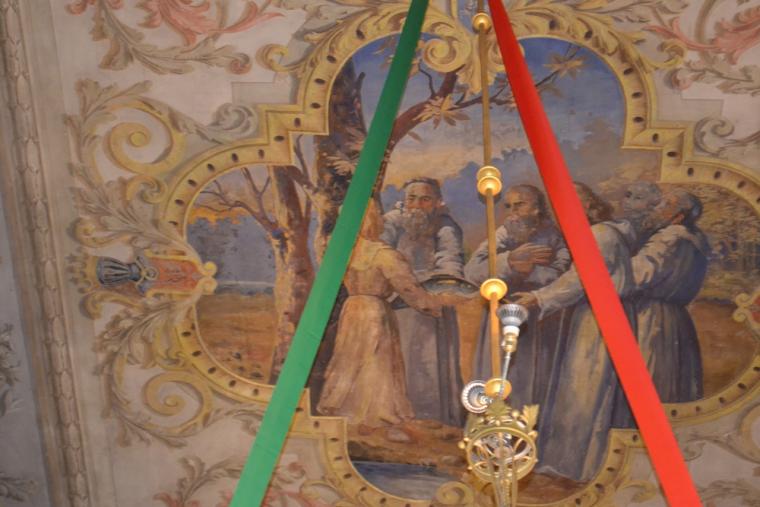 Z Lichenia udaliśmy się do Kazimierza Biskupiego. Tu nawiedziliśmy kościół pw. św. Marcina, który jest jednym z najstarszych w Wielkopolsce. Najstarsza jego część datowana jest na 1020 rok. Jest to także sanktuarium Pięciu Braci Męczenników. O ich życiu, męczeństwie, kulcie, historii opowiedział nam przewodnik. Sufit w kościele zdobią piękne polichromie. W zwieńczeniu ołtarza bocznego znajduje się obraz św. Rocha, tak bliskiego naszej wspólnocie parafialnej. Z sanktuarium Pięciu Braci Męczenników przeszliśmy do zabytkowego klasztoru Misjonarzy Świętej Rodziny. Zapoznaliśmy się z jego historią. Kleryk będący przewodnikiem opowiedział nam o miejscach posługiwania misjonarzy oraz o tym, jak wygląda dzień w klasztorze. Zwiedziliśmy także salkę z pamiątkami przywiezionymi z misji.