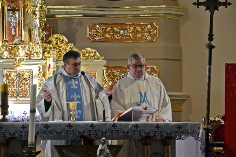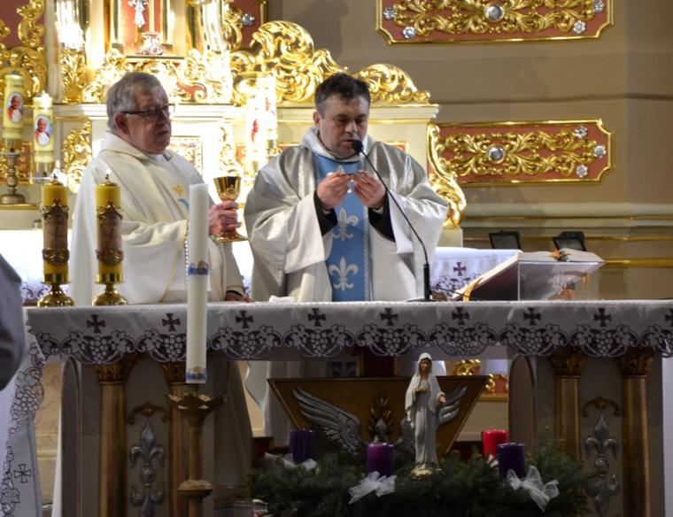 W słowie skierowanym do zebranych w świątyni, nawiązując do słów Ewangelii,  ks. kan. Krzysztof podkreślił, że byliśmy świadkami dialogu, który odmienił dzieje ludzkości. Zaznaczył, że Maryja odpowiadając  miłością na miłość Boga, staje się Matką Syna Bożego. Zaakcentował, że kumulacją  i szczytem miłości Boga do człowieka jest Niepokalana, która nigdy Go nie zdradziła nawet przez najmniejszy grzech. Kontynuując pyta, czy w  związku z tym, że popełniamy grzechy mamy popadać w kompleksy, że nie dorównujemy Maryi? Nie, gdyż na chrzcie świętym staliśmy się ukochanymi  dziećmi Bożymi, dlatego Bóg  nigdy nie przestanie nas kochać. Kaznodzieja podkreślił, że ta miłość łączy się również z naszym zjednoczeniem z Jezusem w Komunii św. Gdy ją przyjmujemy stajemy się żywym tabernakulum. Kontynuując kapłan powiedział  „Jesteśmy tutaj i dobrze, że jesteśmy, ale jednocześnie prośmy Matkę Najświętszą abyśmy na Jej wzór stawali się każdego dnia takim żywym tabernakulum, niosącym  Chrystusa drugiemu człowiekowi” Kończąc, podkreślił, że nie wszędzie kapłan może dotrzeć, ale świadectwo naszego życia, życzliwość i miłość wobec bliźnich może sprawić, że skruszone zostaną serca zatwardziałych grzeszników. Podczas tej Eucharystii wiele osób przyjęło Jezusa do swego serca w Komunii Świętej, stając się żywym tabernakulum. Słowa rozważania skierowane do wiernych zmuszają do refleksji, zastanowienia, do podjęcia pracy nad sobą. Sprzyja temu adwentowy czas, czas przemiany i prostowania ścieżek życia, przygotowywania miejsca dla przychodzącego Pana. Po Mszy Świętej ks. kan. Krzysztof poprowadził modlitwę różańcową.
