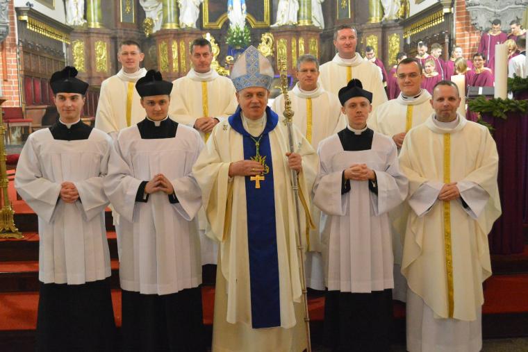 W homilii mszalnej Biskup legnicki podkreślił, że uroczystość Niepokalanego Poczęcia NMP to dzień stworzenia szczególnego człowieka. – W Maryi Bóg pozostawił oryginalny zamysł dotyczący człowieka. O ile w Adamie i Ewie obraz ten został zwichnięty, to Maryja jest narzędziem Boga, poprzez które Bóg chce ten obraz odtworzyć – mówił. Ksiądz biskup zaznaczył, że Bóg potrzebował Maryi, by w Jej łonie mógł zaistnieć Syn Boży, by przez niego wydobyć człowieka z nieprawości. – Maryja stanęła na antypodach tego, co zrobili Adam i Ewa. Ona nie dała innej możliwości, jak odpowiedź pozytywna na boże wezwanie – „niech mi się stanie według słowa Twego”, dlatego jest dla nas nauczycielką i matką. Swoim życiem zaświadczyła, że to jest jedyna, prawdziwa droga – mówił Biskup legnicki. Zwracając się do kleryków powiedział: – Sutanna to znak zewnętrznego oddania się Chrystusowi, to odpowiedź waszej gotowości bycia z Jezusem. Jest jeszcze długa droga przed wami, nie tylko do święceń, ale do końca życia. Chodzi o to, by coraz pełniej dawać odpowiedź: „jestem gotów złączyć się z Jezusem, chcę być z Nim”. Niech Maryja was prowadzi, byście mogli obwieszczać innym te prawdy boże – życzył bp Kiernikowski.