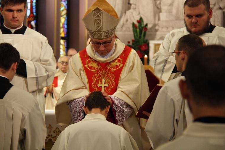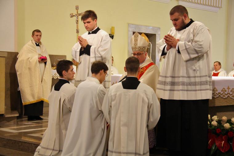 Zwracając się do kandydatów do święceń ks. Mejzner życzył, aby jednoczyli ludzi we wspólnocie Ludu Bożego. Dodał także, aby duch służby właściwy dla tej godności nieustannie w nich wzrastał w całym życiu.
