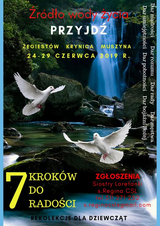 Serdecznie zapraszamy na wakacyjne rekolekcje w górach na szlaku- ŻEGIESTÓW, KRYNICA, MUSZYNA. Temat rekolekcji: "ŹRÓDŁO WODY ŻYCIA, PRZYJDŹ... 7 kroków do radości"