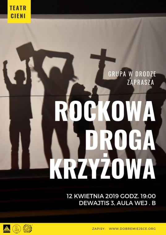 Nabożeństwo Drogi Krzyżowej najczęściej kojarzy się z czytaniem rozważań i śpiewem pieśni wielkopostnych. Podczas Rockowej Drogi Krzyżowej wydarzenia z drogi Zbawiciela na Golgotę, oparte o teksty Pisma św. i współczesne wydarzenia, opowiedziane są w formie muzycznej, której towarzyszy wizualna interpretacja w odniesieniu do realnych sytuacji z życia codziennego. Teatr cieni jest formą ekspresji artystycznej, która pozwala widzowi na "zobaczenie siebie" w postaciach po drugiej stronie płótna.
