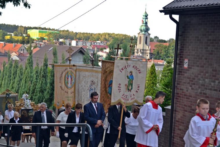 Uroczystości odpustowe ku czci św. Rocha to jedno z najważniejszych wydarzeń  w roku w mikstackiej wspólnocie parafialnej. Już 7 sierpnia rozpoczęły się duchowe przygotowania do tej uroczystości. Młodzi parafianie spotykali się w Szkole św. Rocha., by wspólnie się modlić, ale także poznawać postać naszego niebieskiego patrona. Wielu parafian codziennie o godz. 18:30 uczestniczyło we Mszy św. połączonej z Nowenną do św. Rocha. W przedodpustowych dniach nauki rekolekcyjne głosił kapłani z Dekanatu Mikstackiego. Tematem rozważań w poszczególne dni były błogosławieństwa wygłoszone przez Jezusa na Górze.  . Z pewnością pomogły nam one w przygotowaniu do pięknego, szczególnego odpustowego czasu. A ten właśnie w Diecezjalnym Sanktuarium Świętego Rocha w Mikstacie trwa. W uroczystość Wniebowzięcia Matki Bożej o godz. 18:00 w kościele farnym sprawowana była Msza święta.  Po Eucharystii  z kościoła farnego wyruszyła uroczysta procesja  z Najświętszym Sakramentem i relikwiami niebieskiego Patrona na Wzgórze Mikstackie, gdzie znajduje się Diecezjalne Sanktuarium Świętego Rocha.  W procesji uczestniczyli kapłani posługujący na co dzień w mikstackiej wspólnocie,  z niej pochodzący oraz liczna rzesza parafian, gości i pielgrzymów.  Z feretronami, sztandarami przy dźwiękach orkiestry parafialnej przeszliśmy na miejsce głównych uroczystości. Po przybyciu do Sanktuarium odśpiewane zostały uroczyste nieszpory i odprawiona Nowenna do Świętego Rocha.  Po Nowennie rozpoczęło się całonocne czuwanie modlitewne. Wiele osób w tej nocnej ciszy zapewne  nawiedzi  Sanktuarium, by  z  Jezusem ukrytym w Najświętszym Sakramencie i naszym patronem Świętym Rochem podzielić się swoimi radościami i troskami, by podziękować za otrzymane łaski i prosić o dalszą opiekę i wsparcie. Dla wielu jest on skutecznym Patronem.