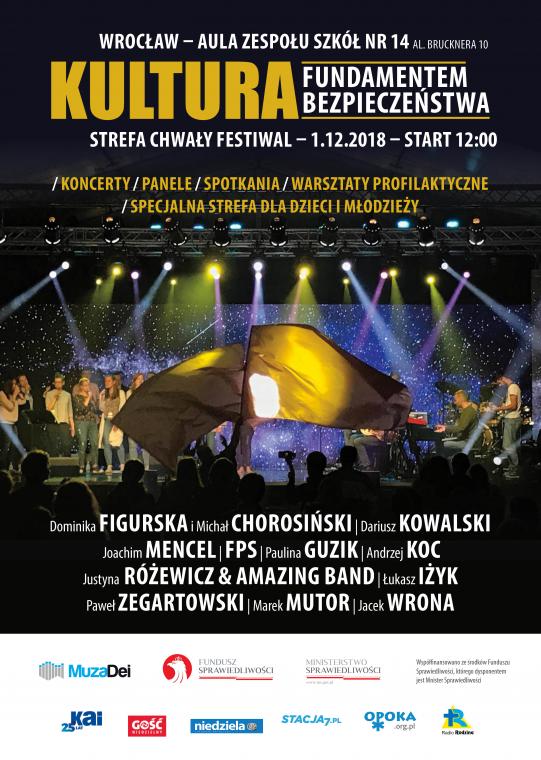 Strefa Chwały Festiwal – Kultura fundamentem bezpieczeństwa to spotkanie dla całych rodzin, podczas którego będą miały miejsce m. in: panel dyskusyjny i konferencyjny dla dzieci, młodzieży, dorosłych, osób samotnych i małżeństw, Strefa Chwały YOUNG i Strefa Chwały KIDS (zabawy integracyjne, profilaktyka przeciw uzależnieniom), rodzinne warsztaty profilaktyczne, strefa profilaktyki indywidualnej (możliwość rozmowy z psychologiem psychoterapeutą, księdzem). Wśród zaproszonych gości jest m. in. Andrzej Koc, Jacek Wrona, Dominika Figurska i Michał Chorosiński, Dariusz Kowalski, Paweł Zegartowski, Tomasz Gubała i zespół Full Power Spirit.