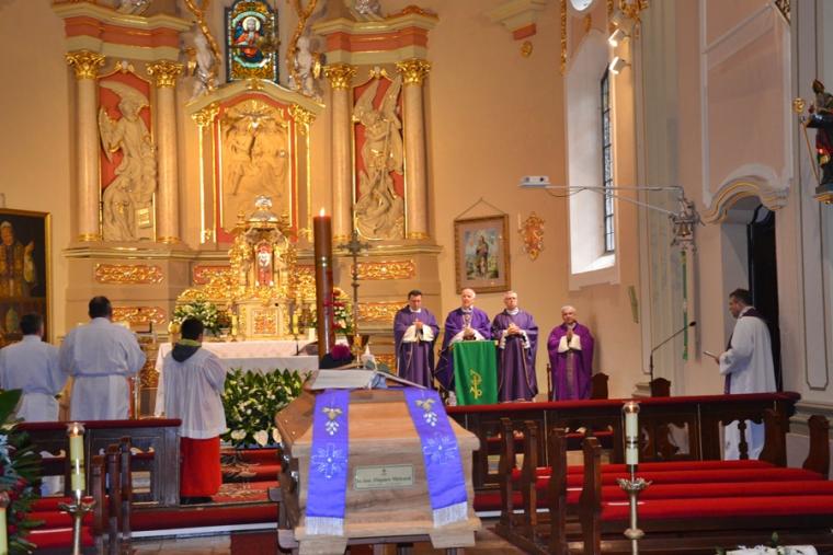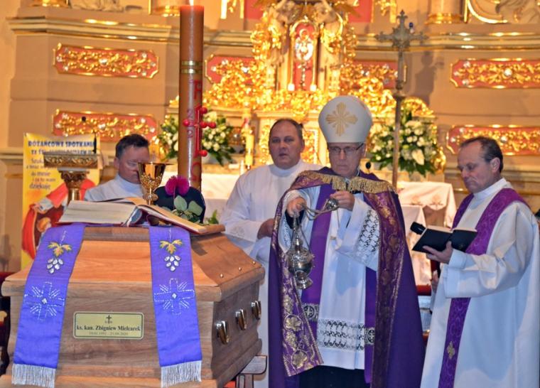 21 września, w 43 roku kapłaństwa odszedł do Domu Ojca w Recklinghausen ks. kan. Zbigniew Mielcarek syn ziemi mikstackiej. Ksiądz kanonik przez blisko trzydzieści lat posługiwał w Polskiej Misji Katolickiej w Niemczech. Uroczystości pogrzebowe śp. ks. kanonika Zbigniewa odbyły się 2 października, w święto Aniołów Stróżów w Mikstacie, parafii z której pochodził. By pożegnać zasłużonego w posłudze w Bożej winnicy Ks. Zbigniewa przybyli ks. biskup senior diecezji świdnickiej Ignacy Dec oraz delegat Archidiecezji Wrocławskiej ks. bp Andrzej Siemieniewski. Obecni byli także kapłani z Niemiec, a wśród nich ks. Rafał Kowalczyk proboszcz parafii w Recklinghausen, wraz z parafianami, koledzy kursowi, kapłani z różnych stron Polski, współbraci kapłani wywodzący się z mikstackiej parafii i jej wierni, przyjaciele i znajomi, którzy chcieli ofiarować zmarłemu dar modlitwy i towarzyszyć mu w drodze na miejsce wiecznego spoczynku. Słowa powitania do wszystkich przybyłych na uroczystości pogrzebowe skierował ks. kan. Krzysztof Ordziniak, proboszcz mikstackiej parafii. Mszy św. przewodniczył ks. biskup Ignacy Dec. Rozpoczynając Eucharystię główny celebrans zaznaczył, że sprawowana jest ona w dwóch intencjach: po pierwsze jest dziękczynieniem za wszelkie dobro przekazane przez ks. Zbigniewa ludziom, za dar jego życia i powołania. Druga intencja miała charakter błagalny o wybielenie cieni życia śp. ks. Zbigniewa i wyproszenie mu miłosierdzia Bożego. Homilię wygłosił ks. bp Ignacy. Na początku złożył kondolencje rodzinie zmarłego kapłana i wszystkim tym, których jego śmierć napełniła smutkiem. Ksiądz biskup podkreślił, że na nagrobkach, czy encyklopediach podaje się datę narodzin i śmierci. Zwrócił uwagę, że inna towarzyszy tym wydarzeniom inny klimat. Narodzinom, atmosfera radości przede wszystkim najbliższej rodziny, śmierci i pogrzebowi smutek wielu osób, nie tylko rodziny, ale i tych, którzy spotkali na swej drodze zmarłego. Podkreślił, że w takiej atmosferze, w otoczeniu wielu osób zgromadzonych w mikstackim kościele odbywa się pożegnanie zmarłego Kapłana, który w Mikstacie spędził lata dzieciństwa i młodości. Stąd, jak zaznaczył hierarcha „wyfrunął w świat i oto wraca w swoim zmarłym ciele, które kryje ta trumna, by tu w rodzinnej ziemi spocząć i oczekiwać na końcowe zmartwychwstanie”. Ks. biskup zaakcentował, że śmierć ks. Zbigniewa napełniła wiele osób smutkiem i żalem. Pocieszeniem dla nas są Słowo Boże. Podkreślił, że Bóg daje nam nadzieję, że śmierć nie jest końcem, ale zmianą życia ziemskiego na życie wieczne. Słowa św. Pawła sprawiają, że jak powiedział celebrans „ odżywa w nas wiara, że śp. ksiądz Zbigniew został przeprowadzony z ziemi do niebieskiego mieszkania”. Nawiązując do słów Ewangelii ( J 14,1-3) zaznaczył, że wypełniły się one w życiu ks. Zbigniewa. Bóg przyszedł po swego kapłana i zabrał go do siebie. Kaznodzieja zachęcał do dziękczynienia za życie kapłana, ale i do błagania Boga o darowanie grzechów przez niego popełnionych. Podkreślił, że wszyscy grzeszymy i potrzebujemy Bożego miłosierdzia. Zaakcentował, że śp. ks. Zbigniew nie może już sobie pomóc, ale możemy uczynić to my, żyjący ofiarowując mu swoją modlitwę. Zwrócił uwagę, że modlitwa jest wyrazem wdzięczności i miłości do zmarłego. W dalszej części homilii ks. biskup Ignacy przypomniał najważniejsze wydarzenia z życia ks. Zbigniewa, zaznaczając, że z domu rodzinnego wyniósł najpiękniejsze wiano, wiarę i umiłowanie Boga, modlitwy, miłość i życzliwość do ludzi, gotowość do niesienia im pomocy. Podkreślił, że to właśnie tu w Mikstacie zrodziło się powołanie kapłańskie, do którego przygotowywał się w Arcybiskupim Seminarium Duchownym we Wrocławiu w latach 1971-1977. Przypomniał, że przyszły kapłan mając zaledwie cztery lata został ministrantem, a lata jego formacji w seminarium przypadł na trudny czas, kiedy to Bóg powoływał do siebie trzech kolejnych biskupów wrocławskich. Kontynuując hierarcha przywołał dzień 21maja 1977 roku, kiedy ks. Zbigniew w katedrze wrocławskiej z rąk abpa Henryka Gulbinowicza przyjął święcenia kapłańskie. Przypomniał, że miejscem pierwszej posługi kapłańskiej ks. Zbigniewa był Strzegom. Tu posługiwał przez 5 lat. Następnie został skierowany do parafii pw. Świętego Jerzego w Wrocławiu Brochowie, gdzie pełnił posługę przez sześć lat. W 1988 roku podjął posługę w Polskiej Misji Katolickiej, początkowo w Munster, a następnie w Recklinghausen. Wyjechał, by jak zaznaczył kaznodzieja Polacy przebywający w Niemczech mieli kapłana, który będzie dla nich po polsku sprawował Eucharystię i sakramenty. Podkreślił, że posługa kapłańska ks. Zbigniewa w Polskiej Misji Katolickiej w Niemczech trwała trzydzieści lat. Tam głosił Słowo Boże, przypominał o przykazaniach Bożych, które zostało nam dane po to, byśmy godnie przeżyli życie i tworzyli lepszy świat. Kaznodzieja podkreślił, że ze sprawowania Eucharystii i posługi sakramentalnej czerpał siły do dźwigania krzyży, których nie brakowało jego życiu. Tę mocą napełniał zmarły kapłan tych, którym służył. Kontynuując hierarcha podkreślił zaangażowanie ks. Zbigniewa w jego posługę chorym, biednym, zagubionym. Był pasterzem zatroskanym o swoje owieczki, a tym które się zagubiły pomagał odnajdywać drogę do Boga. Przypomniał także jubileusz 40-lecia kapłaństwa śp. ks. kanonika Zbigniewa w Recklinghausen, w którym uczestniczył i wygłosił homilię. Ks. biskup podkreślił, że podczas tej liturgii dziękujemy Bogu za kapłana, który kochał Boga i ludzi. Podziękował ks. Zbigniewowi za jego uśmiech, życzliwość, rozśpiewanie, otwartość. Kończąc powiedział: „Księże Zbigniewie, wróciłeś z dalekiego 