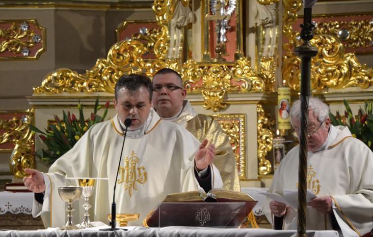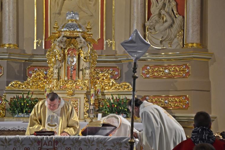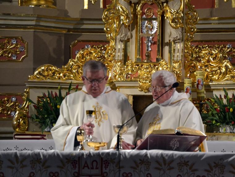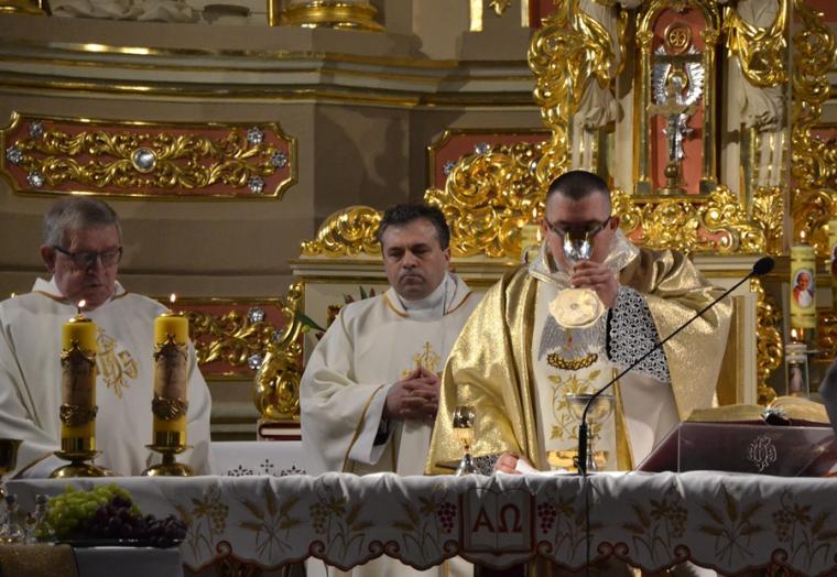 Wielki Czwartek, dzień ustanowienia Sakramentu Eucharystii i Kapłaństwa, przepełniony był dziękczynieniem. W tym dniu o godz. 18:30 zebraliśmy się w parafialnym wieczerniku, by dziękować za ustanowienie Eucharystii i Sakramentu Kapłaństwa, za szafarzy sakramentów, za tych, których Pan powołał i posłał, by prowadzili nas do Boga. Kapłani sprawujący posługę w mikstackiej parafii dziękowali za łaskę powołania oraz prosili o nowe, święte powołania do służby Bogu i ludziom. Mszy Wieczerzy Pańskiej przewodniczył ks. Marcin Walczak. Wraz z nim przy ołtarzu stanęli ks. kan. Krzysztof Ordziniak, ks. kan. Grzegorz Klapa i ks. kan. Zbigniew Mielcarek.