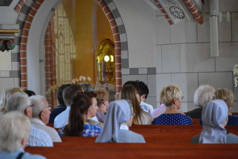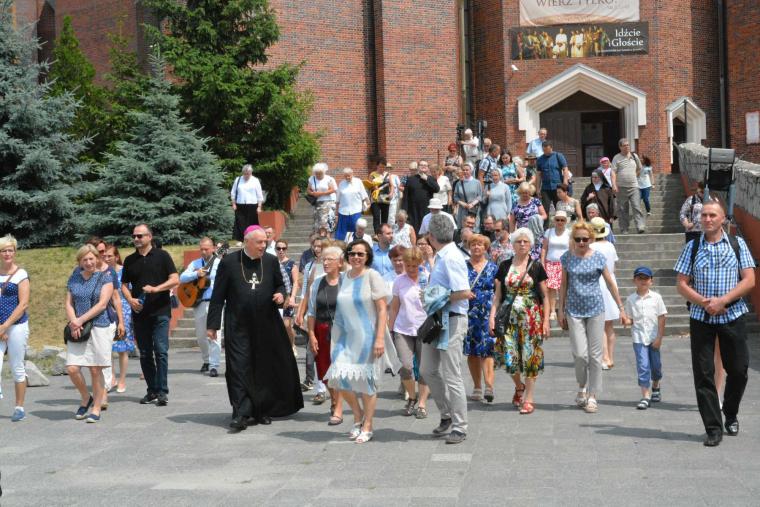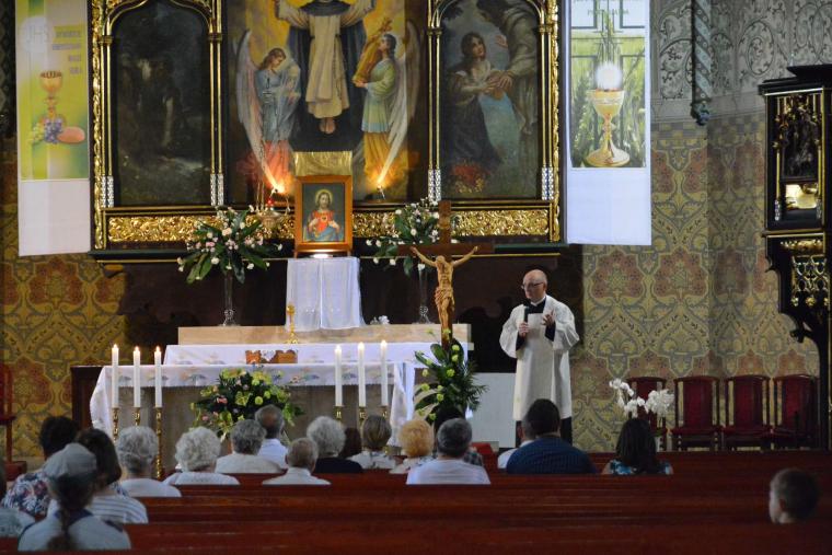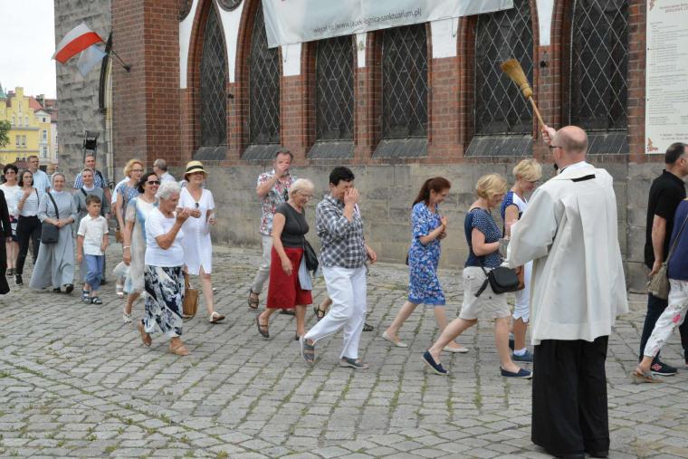 Po wspólnej modlitwie z kościoła Matki Bożej Królowej Polski Marsz wyruszył w kierunku sanktuarium św. Jacka, miejsca Wydarzenia Eucharystycznego. W drzwiach świątyni pielgrzymów powitał proboszcz ks. Andrzej Ziombra. Następnie wygłosił on krótką katechezę dotyczącą Cudu Eucharystycznego.