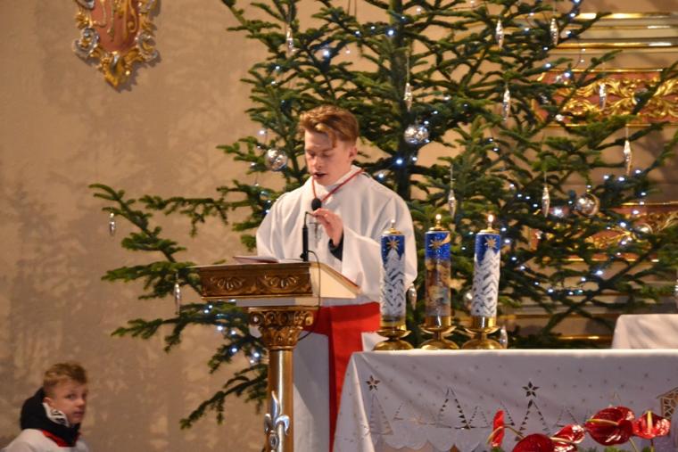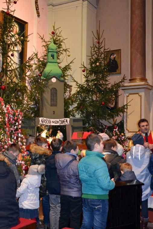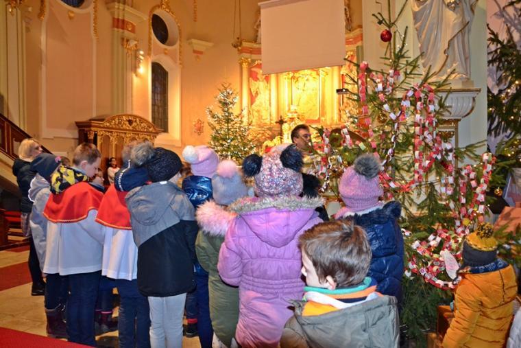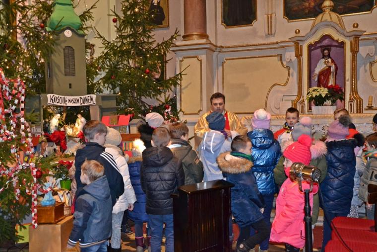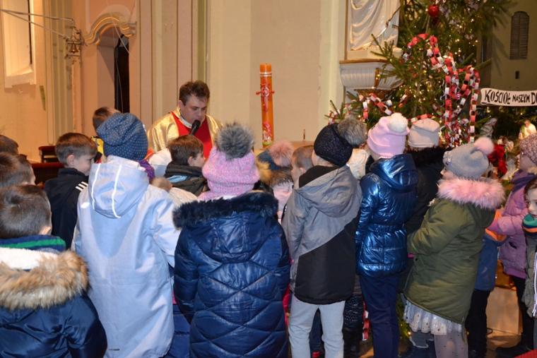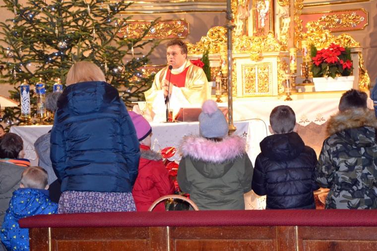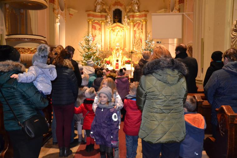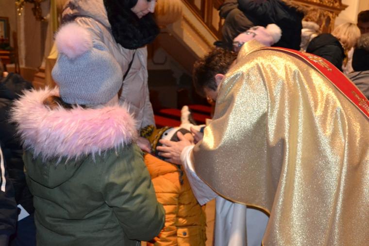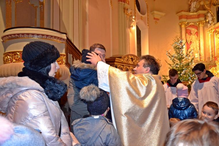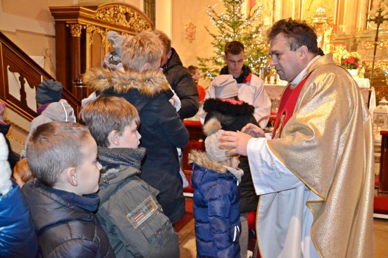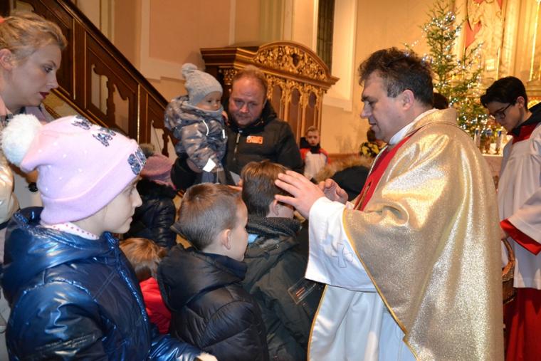 O nietypowej godzinie, bo o 0.15  sprawowana była Eucharystia  w mikstackim wieczerniku  1. stycznia,  ale i dzień wyjątkowy- pierwszy dzień Nowego- 2019- Roku.  Część parafian postanowiła przywitać go właśnie udziałem we mszy świętej, by z Bożym błogosławieństwem pod opieką Maryi Bożej Rodzicielki rozpocząć kolejny rok. Mszę świętą  w intencji parafian sprawował ks. kan. Krzysztof Ordziniak. Składając życzenia zebranym  w kościele przywołał fragment z  Księgi  liczb:  „Niech cię Pan błogosławi i strzeże. Niech Pan rozpromieni oblicze swe nad tobą, niech cię obdarzy swą łaską.  Niech zwróci ku tobie oblicze swoje i niech cię obdarzy pokojem. Tak będą wzywać imienia mojego nad Izraelitami, a Ja im będę błogosławił”. Potrzebujemy błogosławieństwa i opieki  Bożej w każdym dniu rozpoczynającego  się Nowego Roku. Potrzebujemy umocnienia, ale i nadziei, by z wiarą przyjąć wszystko co na nadchodzące dni przygotował dla nas Bóg. W tej mszy świętej uczestniczyli przede wszystkim dorośli. Stało się już tradycją w mikstackiej wspólnocie, że w pierwszym dniu Nowego Roku sprawowana jest msza święta w intencji dzieci połączona z indywidualnym błogosławieństwem. Mimo niesprzyjających warunków atmosferycznych także 1. stycznia A.D. 2019 roku na godzinę 16:00 licznie przybyli do mikstackiej fary rodzice ze swoimi dziećmi. Przynieśli, przyprowadzili, bądź przywieźli swoje dzieci do świątyni, by i one z Bożym błogosławieństwem wkroczyły w Nowy Rok. Mszę świętą sprawował ks. proboszcz Krzysztof Ordziniak. Podczas dialogowanej homilii udał się z dziećmi do żłóbka. Motywem przewodnim rozmowy była brama. Najpierw ks. kanonik zwrócił uwagę młodym parafianom, że wchodząc do kościoła przekroczyli bramę nad którą widnieje napis: „ Zaiste dom to Boży i brama niebieska”. Przy żłóbku ks. kan. Krzysztof nawiązał do słów Ewangelii i nadania imienia Jezusowi. Następnie dzieci wraz z kapłanem podeszły do chrzcielnicy. Tu podkreślono, że chrzest jest bramą, dzięki  której stajemy się dziećmi Bożymi. Kolejnymi ważnymi bramami, istotnymi w życiu człowieka wierzącego, na które zwrócił uwagę kaznodzieja są: sakrament pokuty, pełne uczestnictwo we mszy świętej, a także sakrament bierzmowania. Kapłan zwrócił uwagę na bramę, którą przekraczamy odprowadzając naszych bliskich zmarłych na miejsce wiecznego spoczynku.  Rozważania dotyczące przekraczania poszczególnych bram stały się okazją do podania danych statystycznych dotyczących życia parafii. Tym razem to tu, przy chrzcielnicy zostało złożone wyznanie wiary.  Po Mszy Świętej ks. proboszcz Krzysztof  Ordziniak  odmówił modlitwę błogosławieństwa dzieci. Następnie ks. proboszcz i ks. wikariusz udzielali dzieciom indywidualnego błogosławieństwa. Dzieci  otrzymały  pamiątkowe obrazki z Aniołem Stróżem i słodycze. Wielu rodziców wraz ze swoimi dziećmi zatrzymywało się przy żłóbku  na chwil modlitwy. Zapewne, wiele rodzin zaprosiło  do swego życia Jezusa, Maryję i Józefa. Pod taką opieką dzieci będą wzrastały w łasce i mądrości u Boga i ludzi... Będą radością  nie tylko dla rodziców, ale i wspólnoty parafialnej. Dodajmy, że wystrój żłóbka nawiązuje do obchodzonego w 2018 roku jubileuszu 100-lecia konsekracji kościoła farnego.