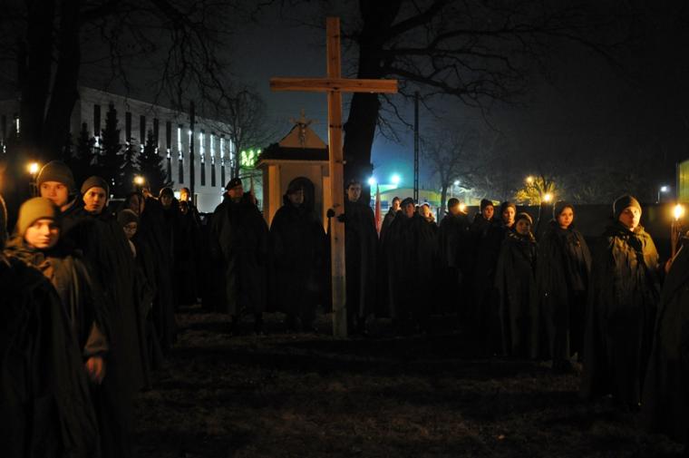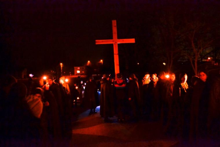 Oświetlona lampkami trasa drogi krzyżowej sprzyjała refleksji, modlitewnej zadumie, czuwaniu i podążaniu za krzyżem Jezusa.