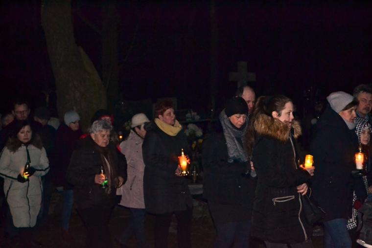 Pomiędzy poszczególnymi stacjami odmawialiśmy tajemnice różańca, Koronkę do Miłosierdzia Bożego, śpiewaliśmy pieśni wielkopostne. Modliliśmy się o dobrą spowiedź, ale także objęliśmy modlitwa naszych chorych parafian, którym stan zdrowia uniemożliwił udział w Drodze Krzyżowej.Modlitwie przewodniczył ks. proboszcz. Przy sanktuarium ks. proboszcz wraz z ks. wikariuszem udzielili zebranym błogosławieństwa. Przy śpiewie pieśni „Witaj Królowo…” uczestnicy nabożeństwa udali się na groby swoich bliskich, by tam w duchu wdzięczności za przekazaną wiarę zatrzymać się na chwilę modlitwy, a także postawić niesiony podczas drogi krzyżowej znicz, symbol pamięci.