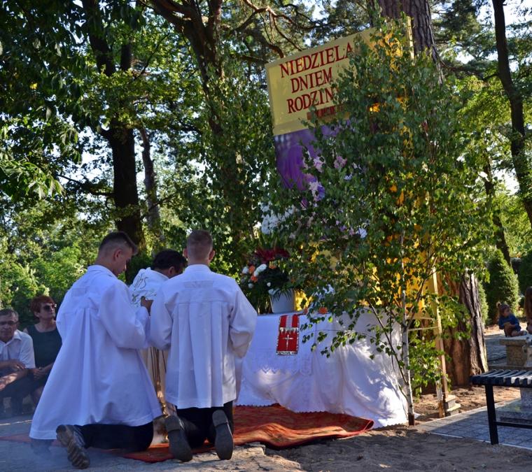 Po Mszy Świętej odbyło się wystawienie Najświętszego Sakramentu, odmówiliśmy Litanię do Serca Jezusowego. Następnie z Jezusem ukrytym pod postacią Chleba wyruszyliśmy alejkami cmentarnymi w procesji do czterech ołtarzu. Myślą przewodnią haseł, która znalazły się w tym roku na przygotowanych przez poszczególne rejony parafii była NIEDZIELA. Hasła skłaniały wiernych do spojrzenia na niedzielę w następujących aspektach: Niedziela dniem Kościoła, Niedziela dniem rodziny, Niedziela dniem wiary, Niedziela dniem człowieka. Procesję zakończyło błogosławieństwo Najświętszym Sakramentem na cztery strony świata. Następnie odbyło się poświęcenie wianków z ziół i kwiatów. To wyraz naszej wiary i zaufania Bogu. Przyniesione zostały pierwociny pól i łąk, by Bóg nam błogosławił, by nikomu nie zabrakło chleba powszedniego, bo tego będącego pokarmem dającym życie wieczne nigdy nie zabraknie… Obyśmy tylko chcieli się nim karmić… Zadziwiająca jest siła wiary i tradycji w naszej wspólnocie.