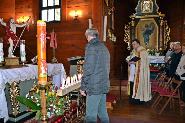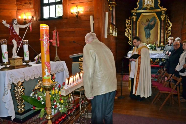 W Niedzielę Miłosierdzia Bożego w parafii zostały odprawione dwie Msze Święte z prośbą o łaski potrzebne dla jego czcicieli. Pierwsza sprawowana była przez ks. kan. Krzysztofa Ordziniaka o godz. 11:00 w kościele farnym. Jest tradycją w naszej parafii, że uczestniczą w niej dzieci. Podczas homilii ks. kanonik nawiązał do słów Ewangelii i zachęcał, zarówno dzieci jak i dorosłych, do troski o rozwój swojej wiary. Nie mogło zabraknąć nawiązania do obchodzonej Niedzieli Miłosierdzia Bożego. Dzieci otrzymały obrazki z Jezusem Miłosiernym na odwrocie których, znajdowały się słowa modlitwy Koronki do Miłosierdzia Bożego. Ich tekst przydał się najmłodszym parafianom, gdyż po zakończonej Eucharystii przy wystawionym Najświętszym Sakramencie odmówiona została właśnie Koronka i Litania do Miłosierdzia Bożego. Trudno wyobrazić sobie ten dzień bez modlitwy w Godzinie Miłosierdzia Bożego. Tę szczególną godzinę część parafian przeżywała w Diecezjalnym Sanktuarium Świętego Rocha. Tu ks. kan. Krzysztof poprowadził Koronkę do Miłosierdzia Bożego. Zanim rozpoczęliśmy modlitwę kapłan przywołał fragmenty z Dzienniczka s. Faustyny. Były wśród nich następujące słowa Jezusa: „Pragnę, aby święto Miłosierdzia, było ucieczką i schronieniem dla wszystkich dusz, a szczególnie dla biednych grzeszników. W dniu tym otwarte są wnętrzności miłosierdzia Mego, wylewam całe morze łask na dusze, które się zbliżą do źródła miłosierdzia Mojego. Która dusza przystąpi do spowiedzi i Komunii świętej, dostąpi zupełnego odpuszczenia win i kar”( 699). Czy można nie skorzystać z tego szczególnego czasu łaski? W czasie Koronki prosiliśmy Pana Jezusa o miłosierdzie dla zmarłych spoczywających na otaczającym Diecezjalne Sanktuarium Świętego Rocha cmentarzu, a także za zmarłych polecanych w wypominkach rocznych. Ich nazwiska wyczytywał ks. kanonik pomiędzy poszczególnymi częściami modlitwy. Po Koronce do Miłosierdzia Bożego w sanktuarium odprawione zostało nabożeństwo Drogi Światła. Nabożeństwo to chyba już na stałe wpisało się do scenariusza obchodów Święta Miłosierdzia Bożego w naszej parafii. Niesie ze sobą ono tyle nadziei. Było okazją do przeżycia 14 spotkań ze Zmartwychwstałym Panem, ale i czasem refleksji nad tym, za co powinniśmy przeprosić Jezusa. Przy rozważaniu poszczególnych spotkań od paschału odpalane były kolejne świeczki. Tuż przed błogosławieństwem zapłonęła czternasta. Po nabożeństwie Drogi Światła w sanktuarium odprawiona została kolejna Msza Święta w intencji czcicieli Miłosierdzia Bożego z Mikstatu i Komorowa.